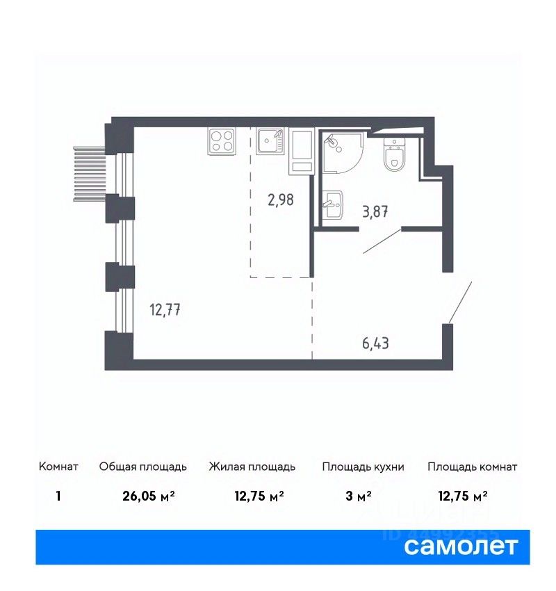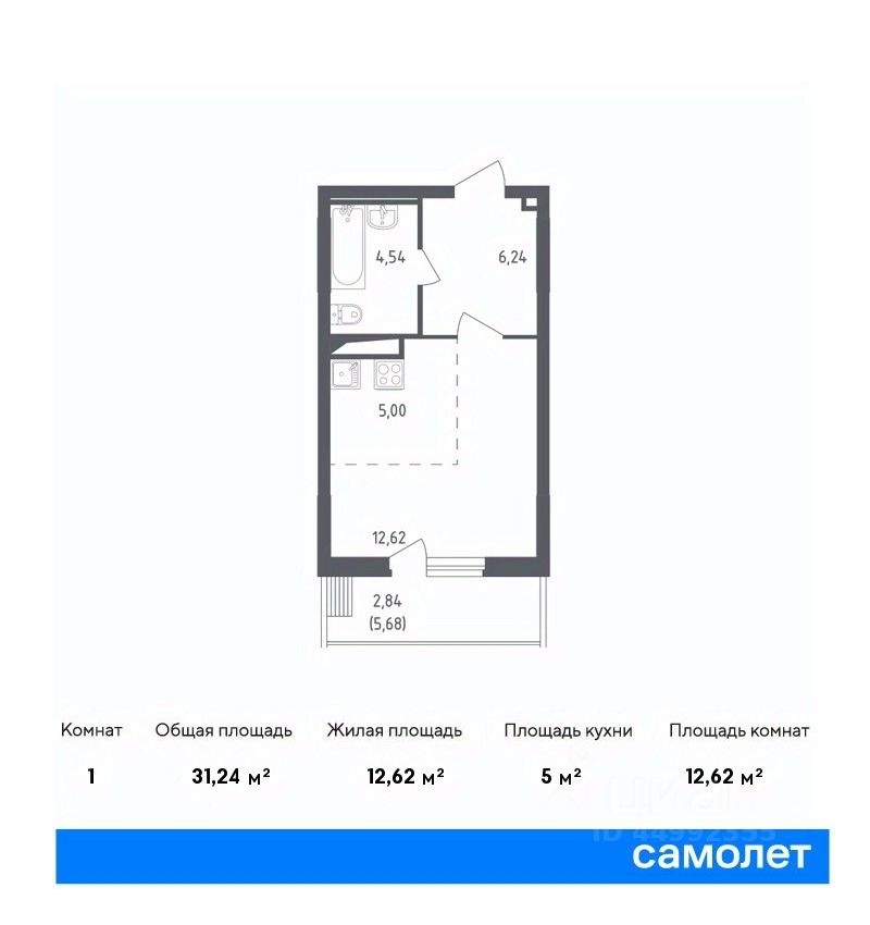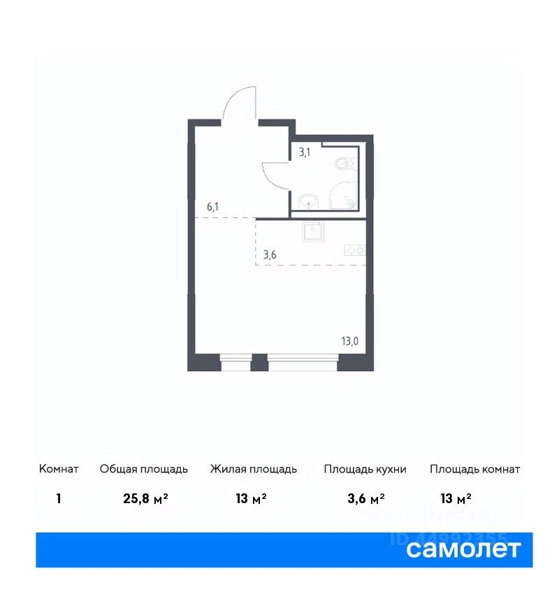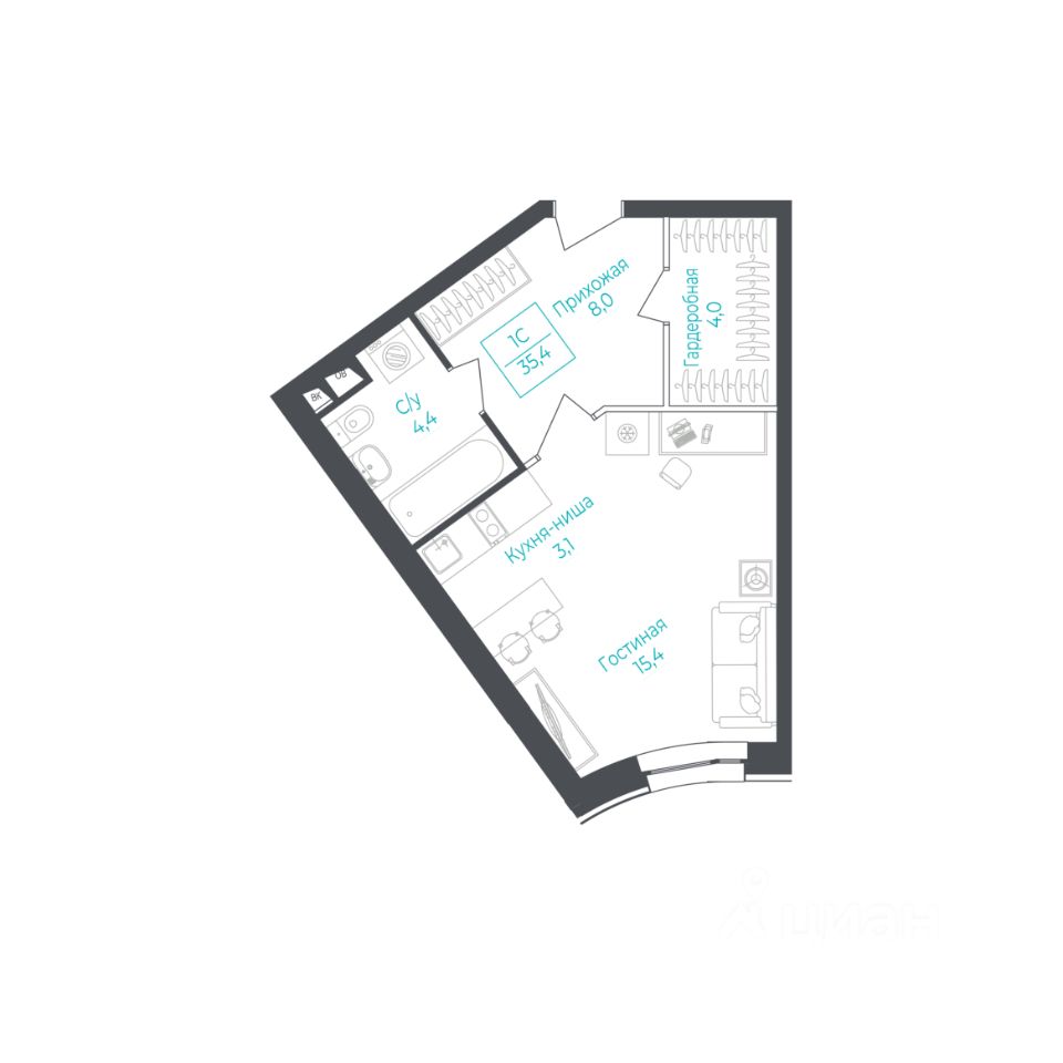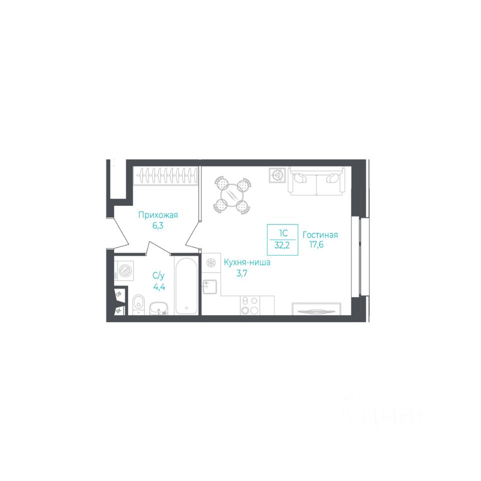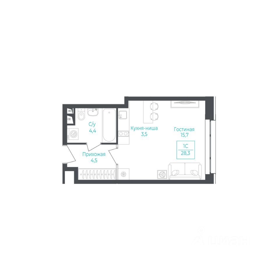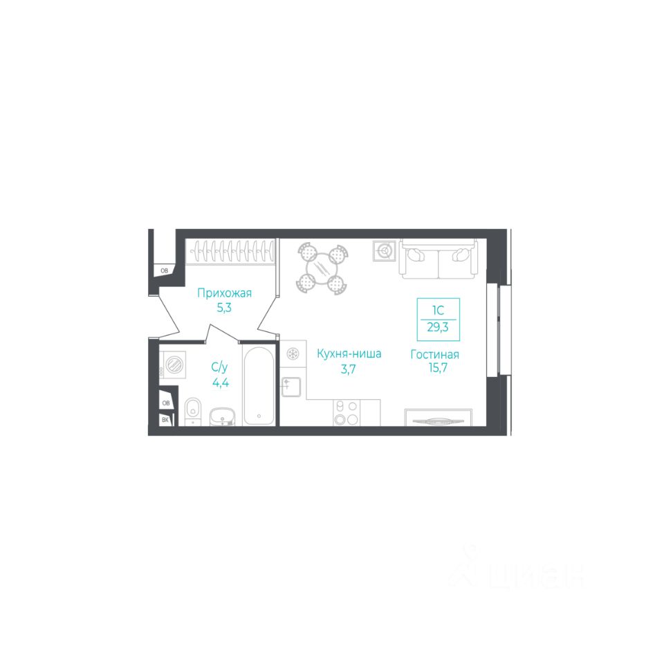 1-комнатные квартиры - от 37.60 до 44.40 кв.м. / от 5.4 до 6.1 млн. руб.