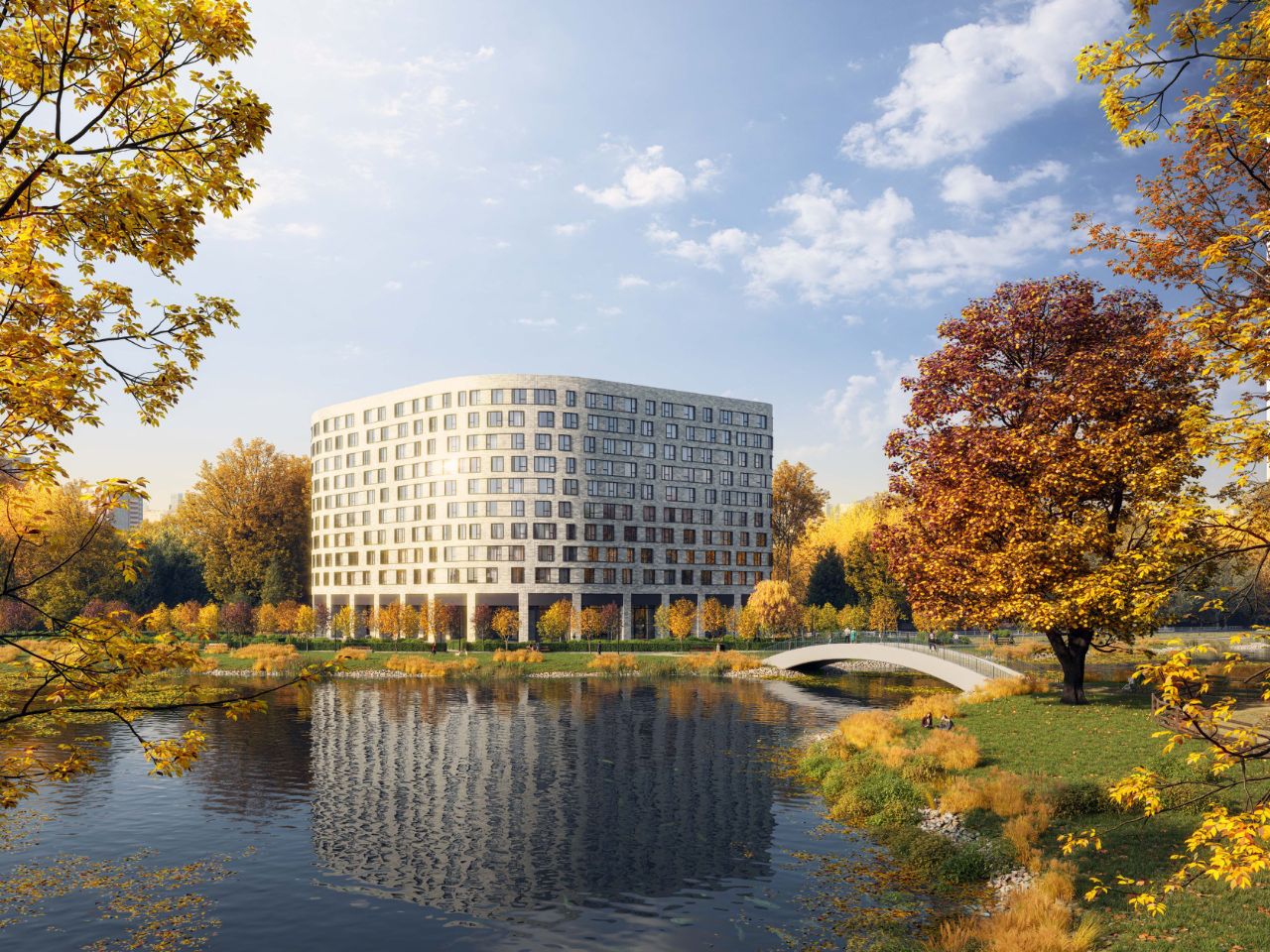 Жилой фонд состоит из более чем 4000 одно-, двух- и трехкомнатных квартир площадью от 37,6 до 99,4 квадратных метров и высотой потолков от 3 до 3,5 метров. Архитекторы предусмотрели различные формы квартир от классических до нестандартных, например, с углом обзора в 270 градусов, а также возможность объединения помещений. Квартиры свободных планировок. Внутри отсутствуют несущие стены и пилоны. Жилые помещения предполагаются с гардеробными или кладовыми комнатами, а двух- и трехкомнатные будут оборудованы двумя санузлами. На верхнем этаже предложено несколько эксклюзивных квартир с французскими окнами. В части помещений проведено панорамное остекление, предусмотрены просторные балконы-кабинеты площадью 8,4 квадратных метров с панорамным остеклением. Жилье передается покупателю без отделки.